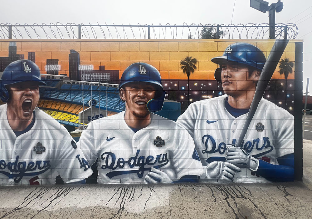 自從大谷翔平加盟道奇後,洛杉磯地區出現不少他的壁畫,顯示球迷對他的熱愛。最大的一幅就在小東京區Miyako Hotel外牆,高46寬18公尺,2024年3月才完成,是棒球迷千萬不能錯過的新景點。此外,小東京區商店街處處可見大谷的照片,有間彩卷行專賣道奇紀念品,又以日本選手個人商品居多,可以找到許多球場沒有賣的紀念品。