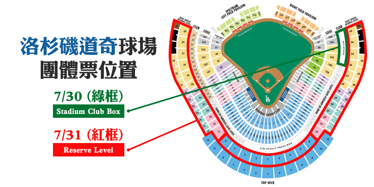 若Stadium Club Box門票售完則改為第一層看台Field Box本壘後方座位。